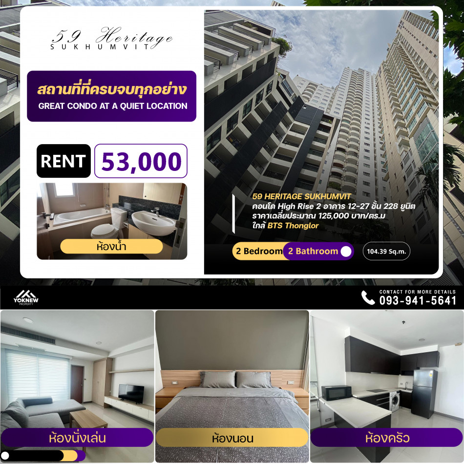 เช่าราคาพิเศษ คอนโด 59 Heritage Sukhumvit ห้องใหญ่ชั้นสูง วิวโล่ง