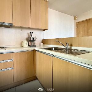ว่างเช่าคอนโด Villa Rachatewi ห้องใหญ่มาก ตกแต่งด้วยพนังสีขาวและพื้นไม้ ห้องครัวใหญ่
