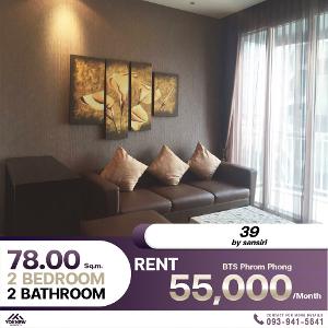 ให้เช่า คอนโด 39 by Sansiri 80 ตรม. 2 นอน 2 น้ำ ค่าเช่า 65000 บาทต่อเดือน