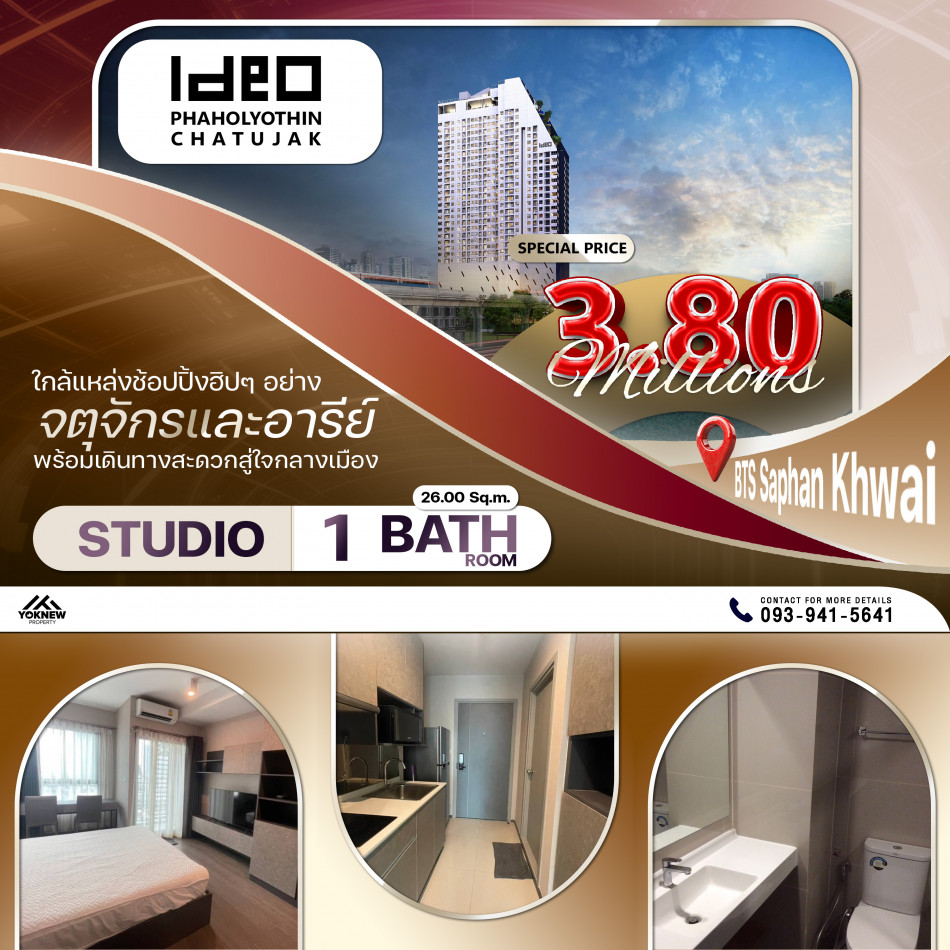 JCS463 ขาย คอนโด สตูดิโอ4.2ล Ideo พหลฯ - จตุจักร 25 ตรม.