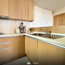 ว่างเช่าคอนโด Villa Rachatewi ห้องใหญ่มาก ตกแต่งด้วยพนังสีขาวและพื้นไม้ ห้องครัวใหญ่