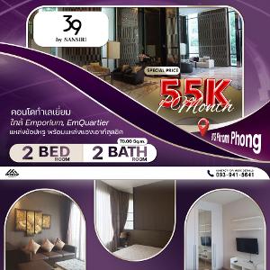 ให้เช่า คอนโด 39 by Sansiri 80 ตรม. 2 นอน 2 น้ำ ค่าเช่า 65000 บาทต่อเดือน