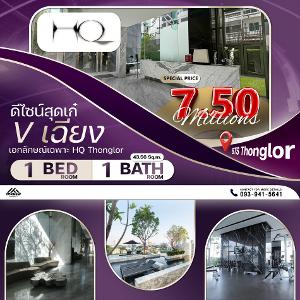 ขาย 1 ห้องนอน 1 ห้องน้ำ คอนโด HQ Thonglor ห้องขายขาดทุน ขายพร้อมผู้เช่า เหมสะกับการลงทุน