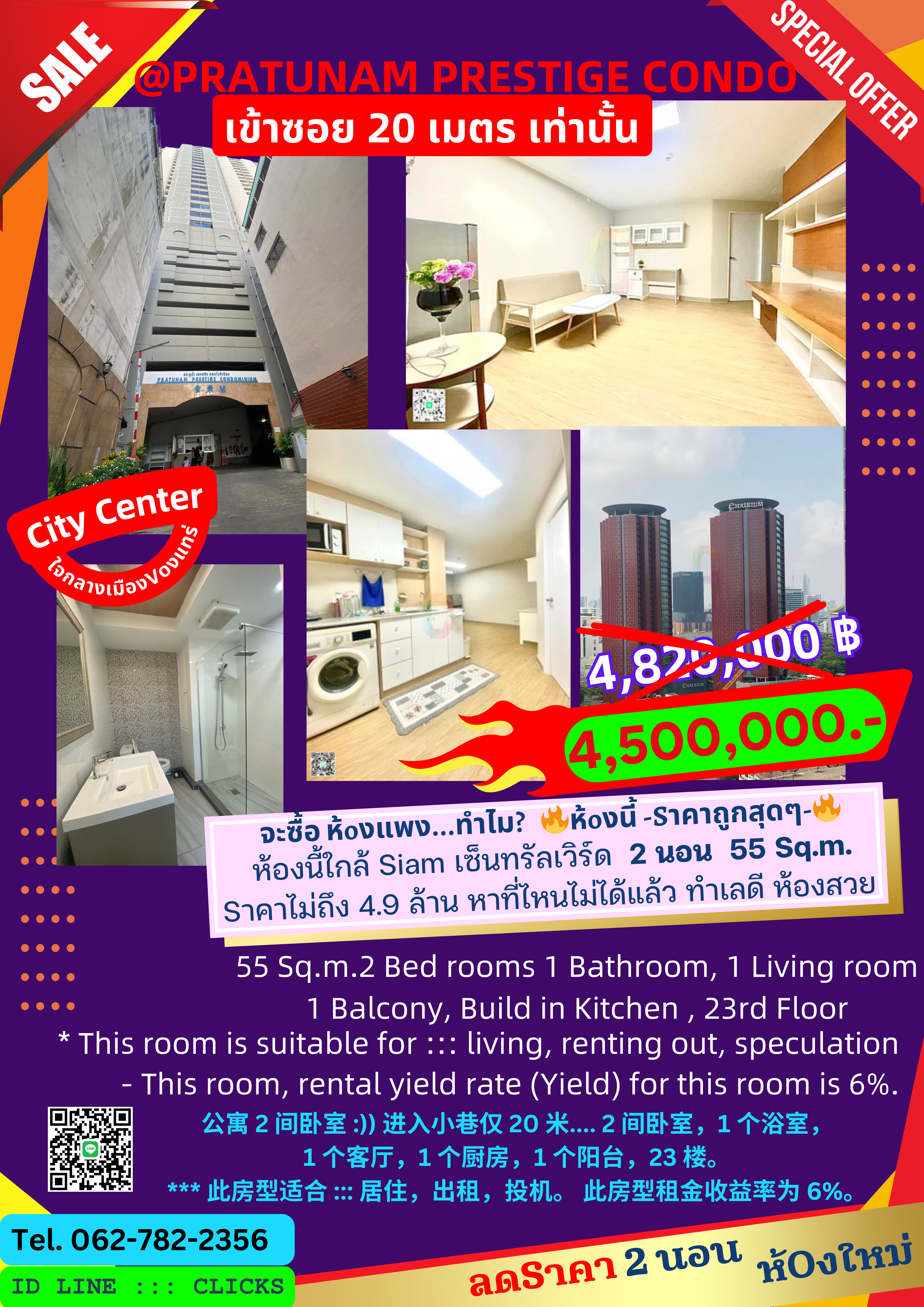 ลด Sาคา ขาย คอนโดโครงการ pratunam prestige | ประตูน้ำ เพรสตีจ - 4500000 บาท ติดต่อคุณ Clicks