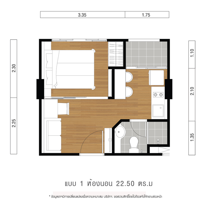 ขนาดพื้นที่ 22.0 ตารางเมตร