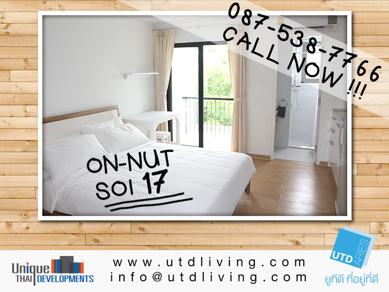 UTD ARIES APARTMENT ใกล้ BTS อ่อนนุช ซอย 17 พร้อมเฟอร์ เริ่มต้น 5,500 บาทต่อเดือน TEL: 02-717-9412-3