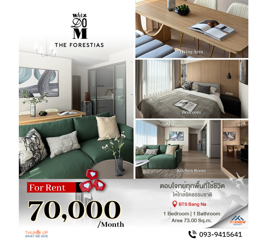 ให้เช่า คอนโด N1038 Whizdom The Forestias 60 ตรม พร้อมเข้าอยู่