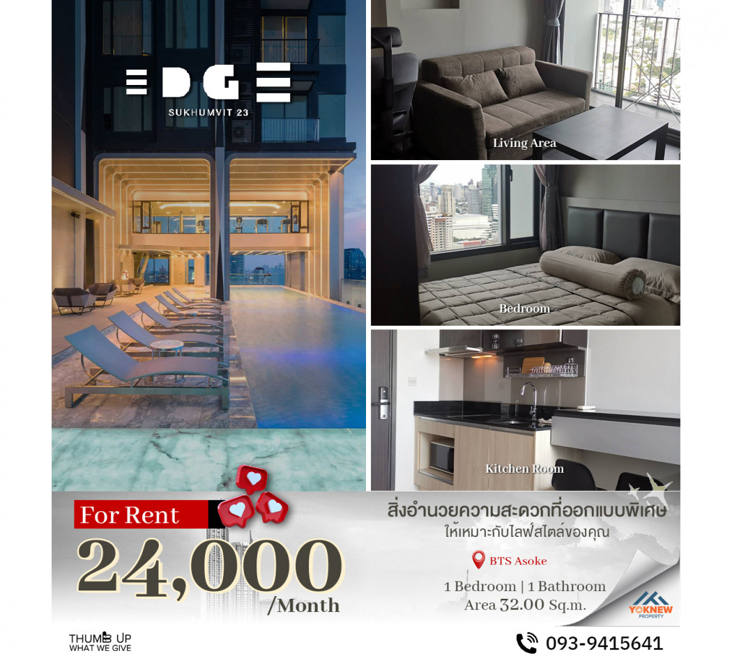 ให้เช่า คอนโด ในทำเลเดินทางสะดวก Edge สุขุมวิท 23 30 ตรม. ใจกลางเมือง Line: @wealthora
