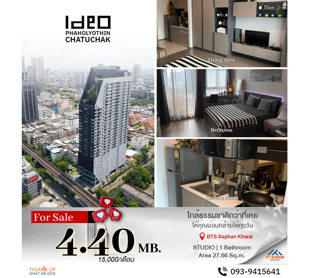 JCS463 ขาย คอนโด สตูดิโอ4.2ล Ideo พหลฯ - จตุจักร 25 ตรม.