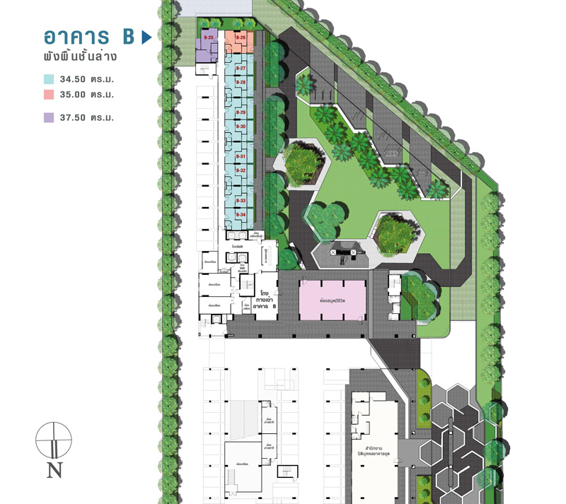 ขายคอนโด ลุมพินี พาร์ค พระราม9-รัชดา 30.5ตร.ม.ชั้น 16 ตึกB ใต้