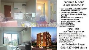 ขายคอนโด Le Cote สุขุมวิท 14 ใกล้ BTSและMRT พท. 46 ตร.ม. 1 ห้องนอน ราคา 5.5 ล้านบาท - คอนโด ขาย