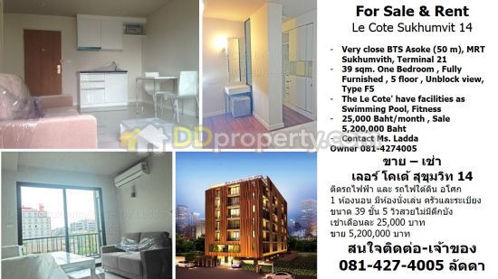 คอนโด เลอโคเต้ สุขุมวิท14 ตรงข้าม เทอร์มินอล์ 100ม. MRT อโศก - คอนโด ขาย