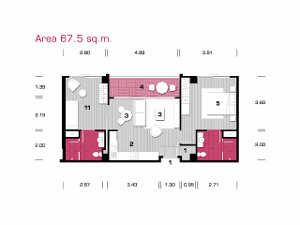 ขนาดพื้นที่ 68.0 ตารางเมตร