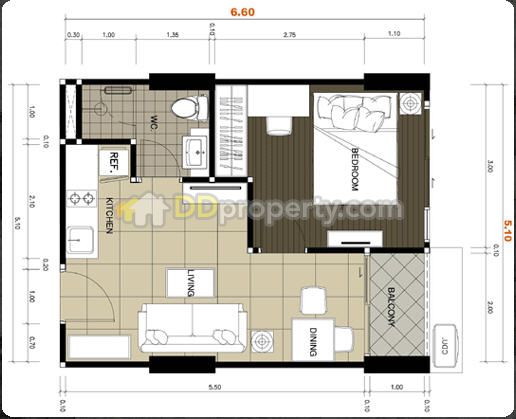 ขนาดห้อง 37.0 ตารางเมตร