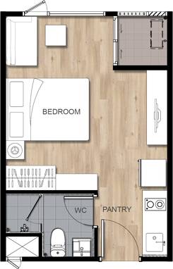 ขาย Condolette Pixel Sathorn 1 ห้องนอน 1 ห้องน้ำ 28.48 ตร.ม. ชั้น 1 MRT พระราม9