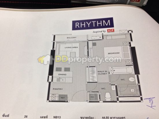 P09CF1710151 RHYTHM Ekkamai สตูดิโอ Bed 1 Bath 31 Sqm