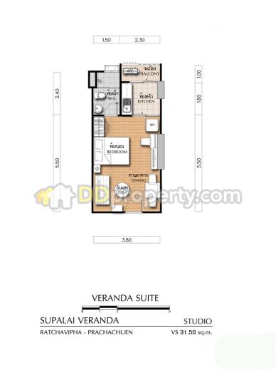ขายดาวน์ด่วน Supalai Veranda ห้อง Studio 31.5m2 - คอนโด ขายดาวน์