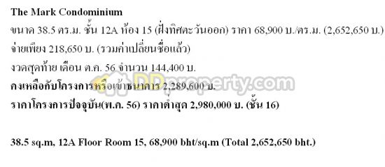Sale! The Mark Condo Ratchada Airport Link, 68,900 bht/sq.m - คอนโด ขาย