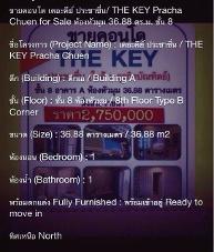 ขายคอนโดโครงการ The Key ประชาชื่น - 2500000 บาท ติดต่อคุณ นุ่น