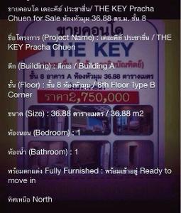 ขายคอนโดโครงการ The Key ประชาชื่น - 1950000 บาท ติดต่อคุณ Sarinphat Nitipreedawat