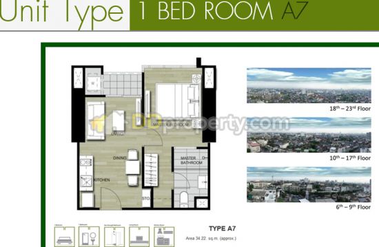 Pre-sale price : 2,009,551 baht, Unit room No. : A1007, 10th Floor, Unit area : 34.79sq.m.