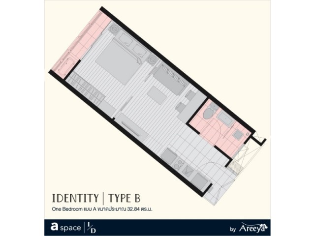 เอ สเปซ ไอดี อโศก-รัชดา ขนาด 33 ตร.ม 1 นอน 1 น้ำ ชั้น 15 มีอาคารเดียว