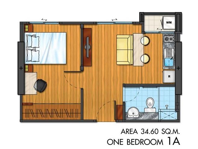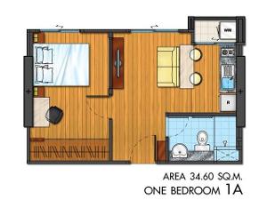 ยูนิตเลขที่ 0809 ชั้น8 ขนาด 35.01 ตารางเมตร 1ห้องนอน 1ห้องน้ำ 222/54