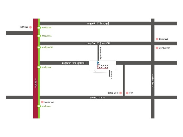 • ใกล้ BTS สถานีอุดมสุข พร้อมบริการรถ Shuttle bus รับส่งระหว่างโครงการ และ สถานีรถไฟฟ้า