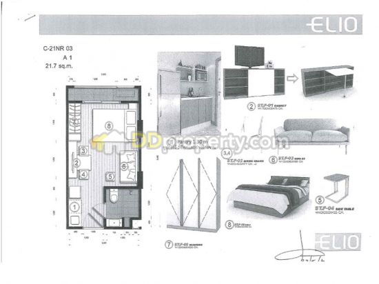 Elio Condo Sukhumvit 64 ห้องเฟอร์นิเจอร์ Size 22 sq m.