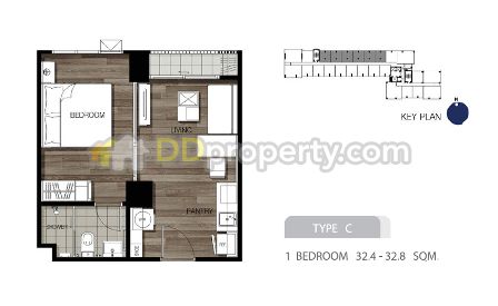 ให้เช่า The Key วุฒากาศ 1 Bed 33 ตรม. ชั้น 8