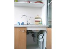 2. ชุดครัวบิวท์อินหรู โต๊ะกินข้าว ซึ่งสามารถนั่งรับประทานอาหารได้ 2 ที่นั่ง เตาไฟฟ้า ซิงค์ล้างจาน