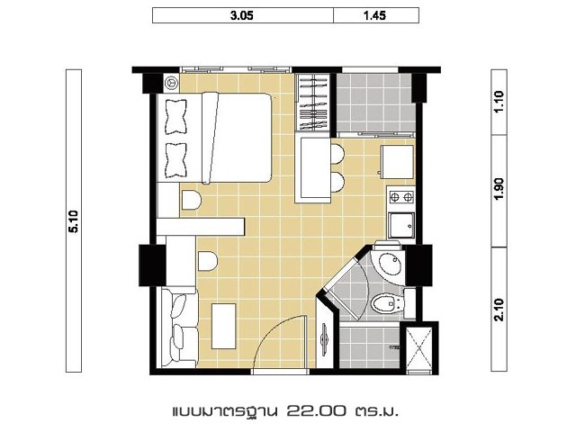 ขนาดพื้นที่ 22.0 ตารางเมตร