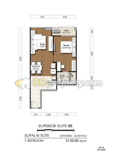 | ขนาดห้อง | 53.0 ตารางเมตร |