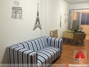 ชั้น 17 ขนาด 49.40 ตร.ม. 1 ห้องนอน 1 ห้องน้ำ 1 ห้องครัว 1 ห้องนั่งเล่น แอร์ 2 เครื่อง ตกแต่งเฟอร์ครบพร้อมเครื่องใช้ไฟฟ้า และมีเครื่องซักผ้า พร้อมเข้าอยู่