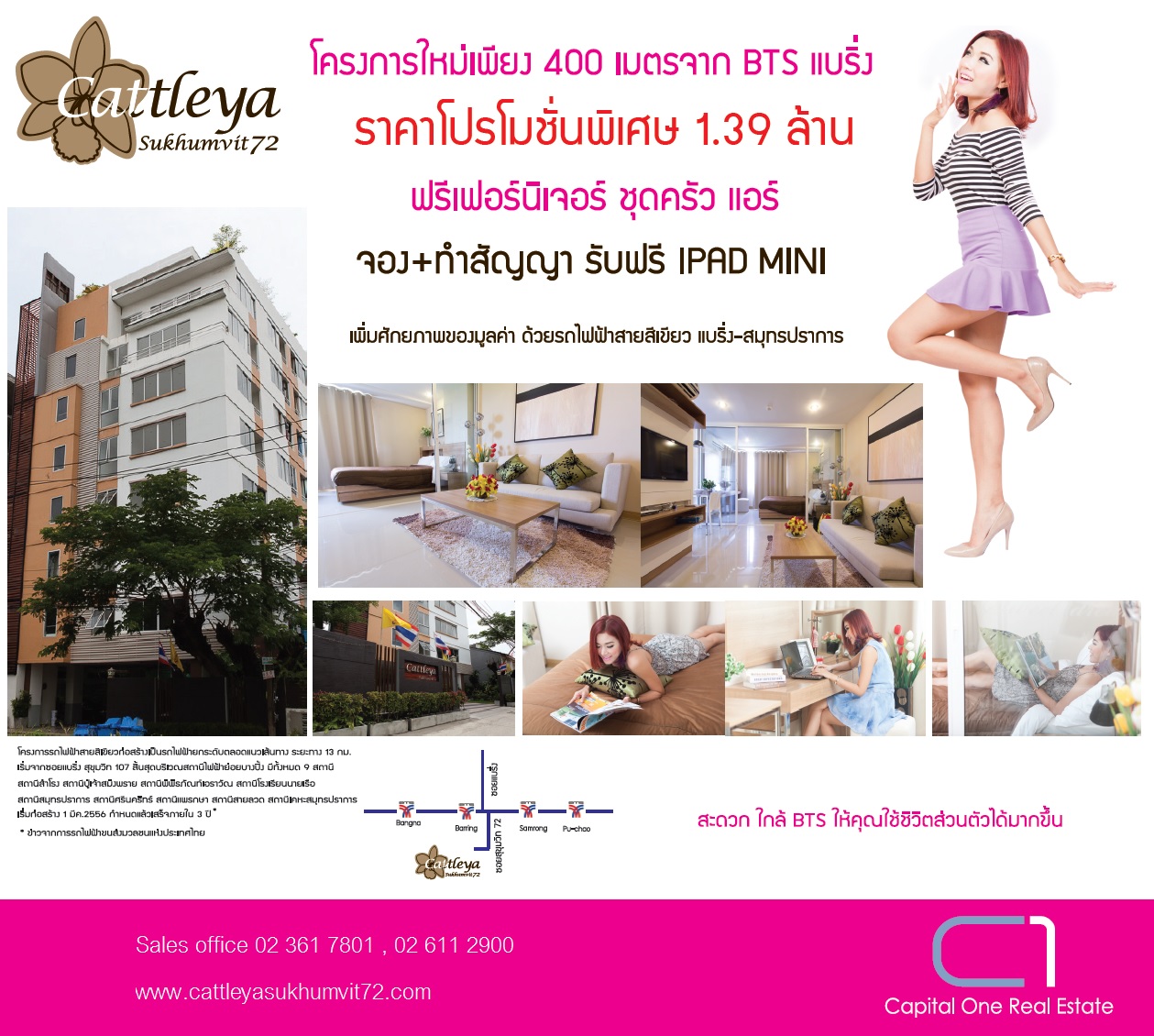Cattleya Sukhumvit 72 คอนโดใหม่ใกล้ BTS แบริ่ง แค่ 3 นาที